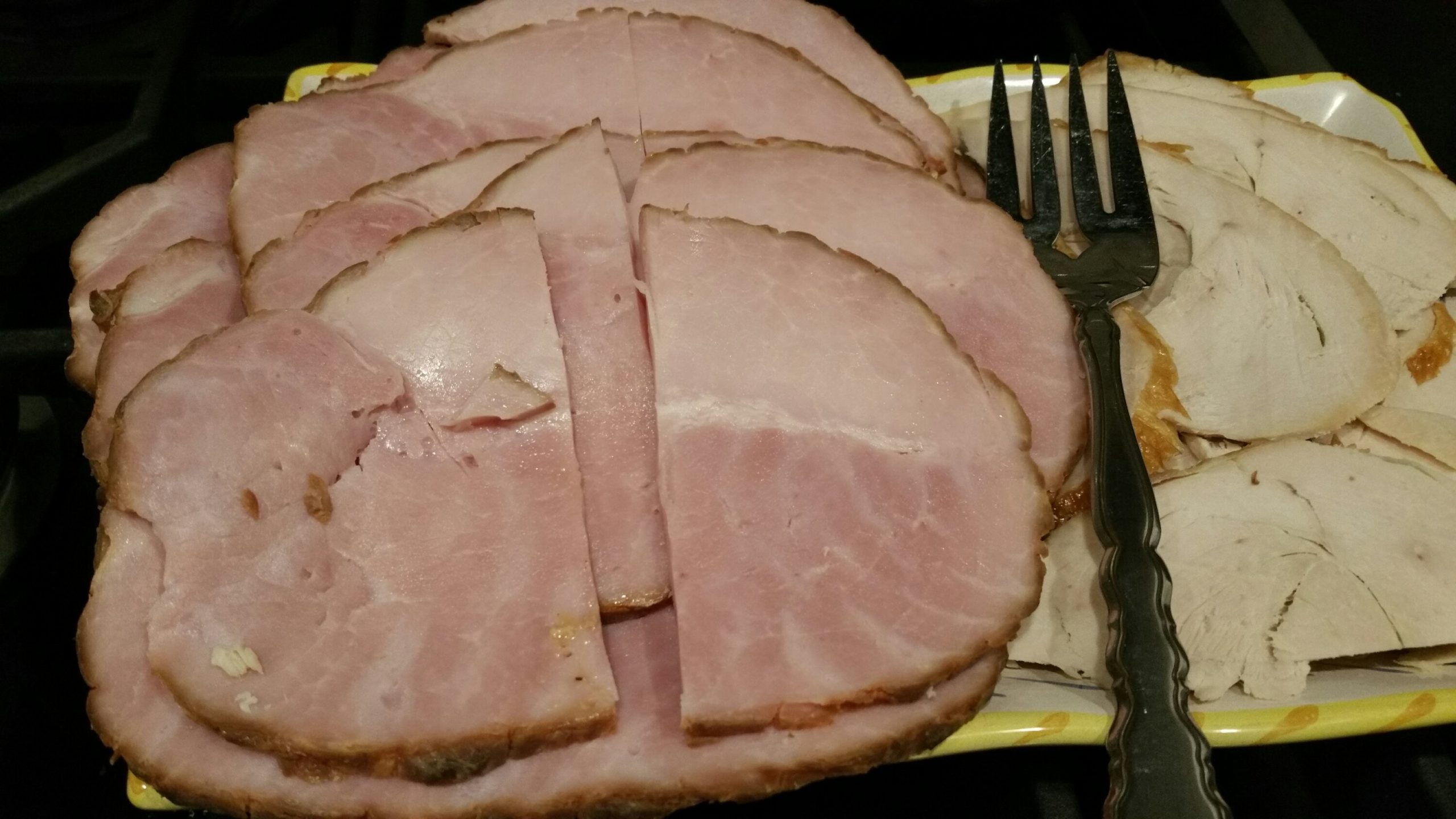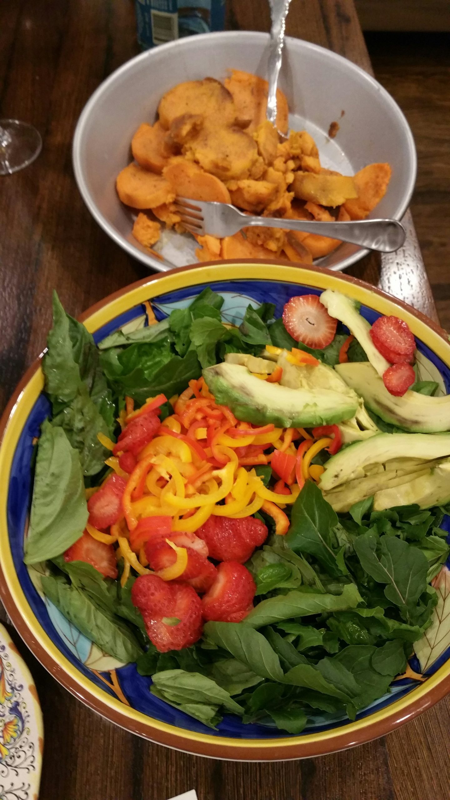 The rest of the main meal was made up of a arugula, avocado, bell peppers and sweet potato salad; smoked ham & turkey, creamed corn, okra & tomatoes, and cornbread dressing.