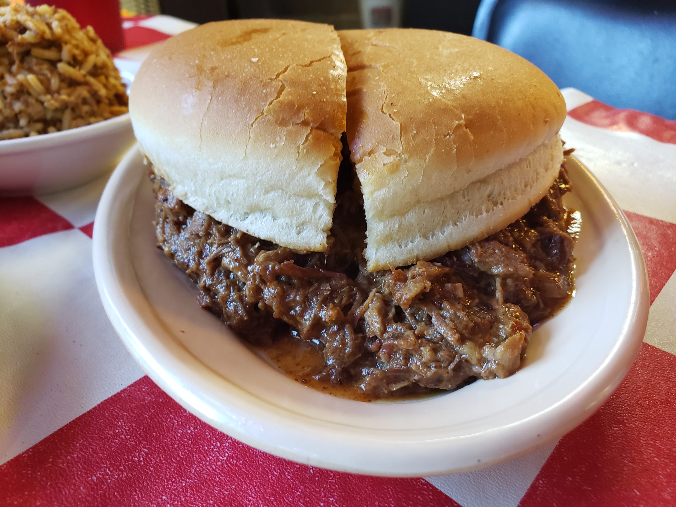 Founded in 1912, this is one of the oldest barbecue restaurants in the country. It’s a great spot with good ambience and food. I ordered the beef link, the chopped beef sandwich, a boudin, and some dirty rice. The sandwich was a revelation–tender, chopped beef in a deep chocolate-colored gravy. I wanted to inhale the entire sandwich, but I chilled. That’s right, I chilled because I knew I had a lot more food in my near future.