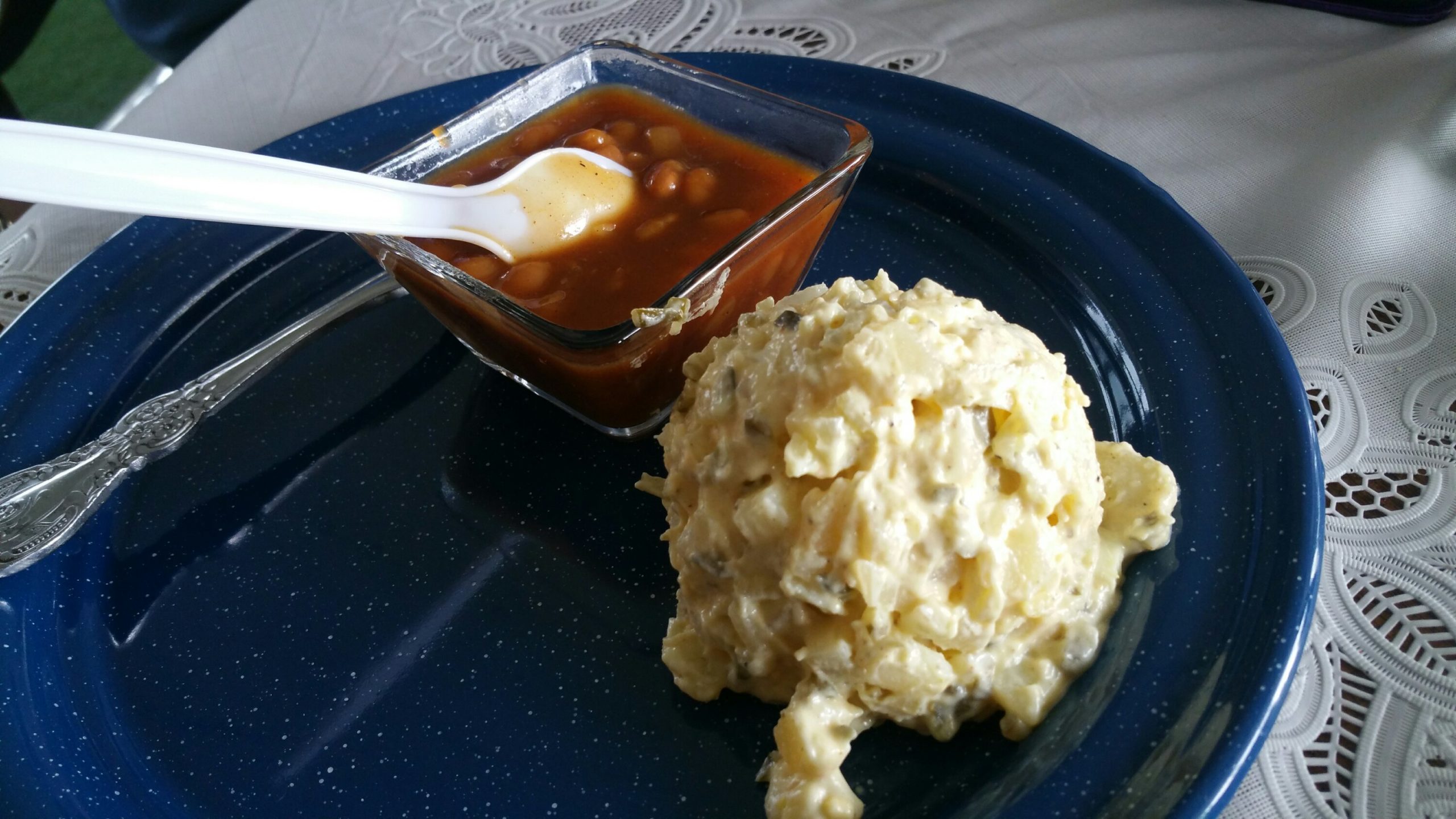 It’s the kind of place where every thing is made from scratch: the bbq, the side dishes and the dessert. I got the rib and brisket combo, baked beans, potato salad (very good), lemonade and a transcendent sweet potato pie a la mode.