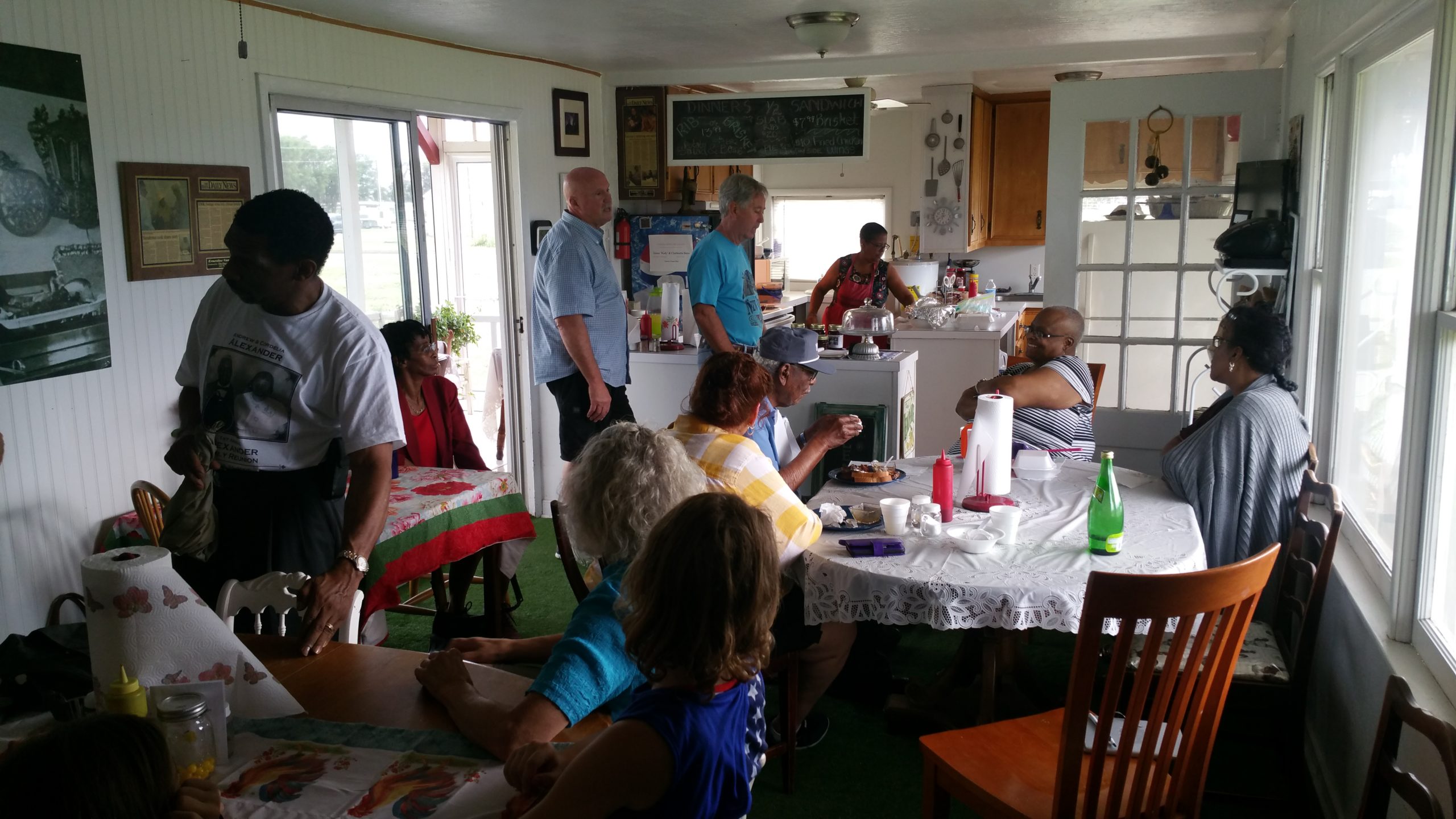 A few years ago, I learned of Ernestine Van Duvall, a barbecue and soul food artist who had strong ties to Nicodemus, Kansas–the oldest black settlement west of the Mississippi River. I thought it would be a great story for my forthcoming book on African American barbecue culture, so I reached out to Angela Bates, the current owner of Ernestine’s BBQ in Nicodemus. She apprenticed under Ms. Van Duvall, and is doing a lot to uphold her legacy. Every year, on the last weekend of July, Nicodemus hosts a “Homecoming Celebration.” At this gathering, people from across the country–many with ties to the community–travel to Nicodemus. The town’s population swells from 20 to 200-plus people. What better time to chase this barbecue story?