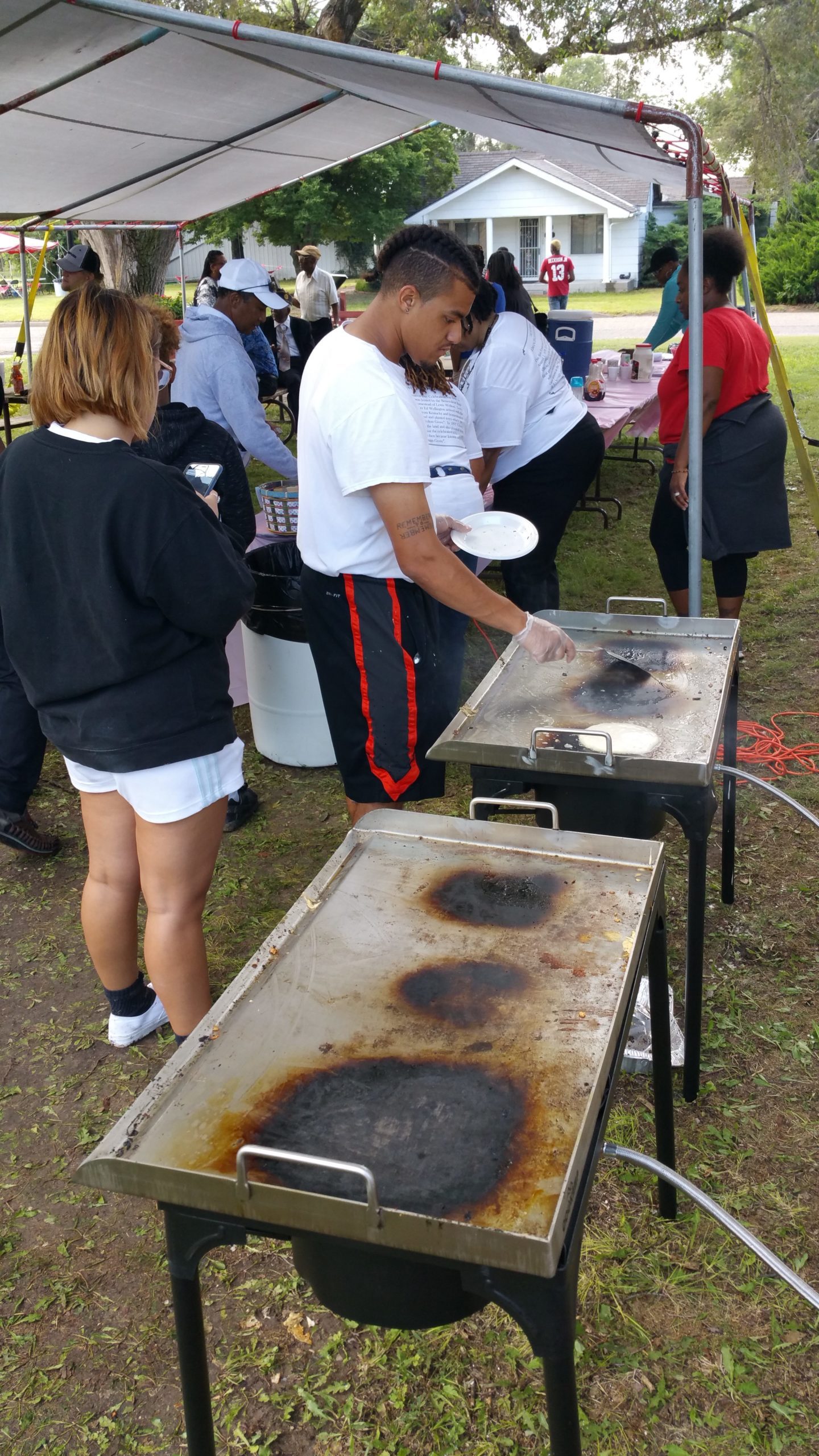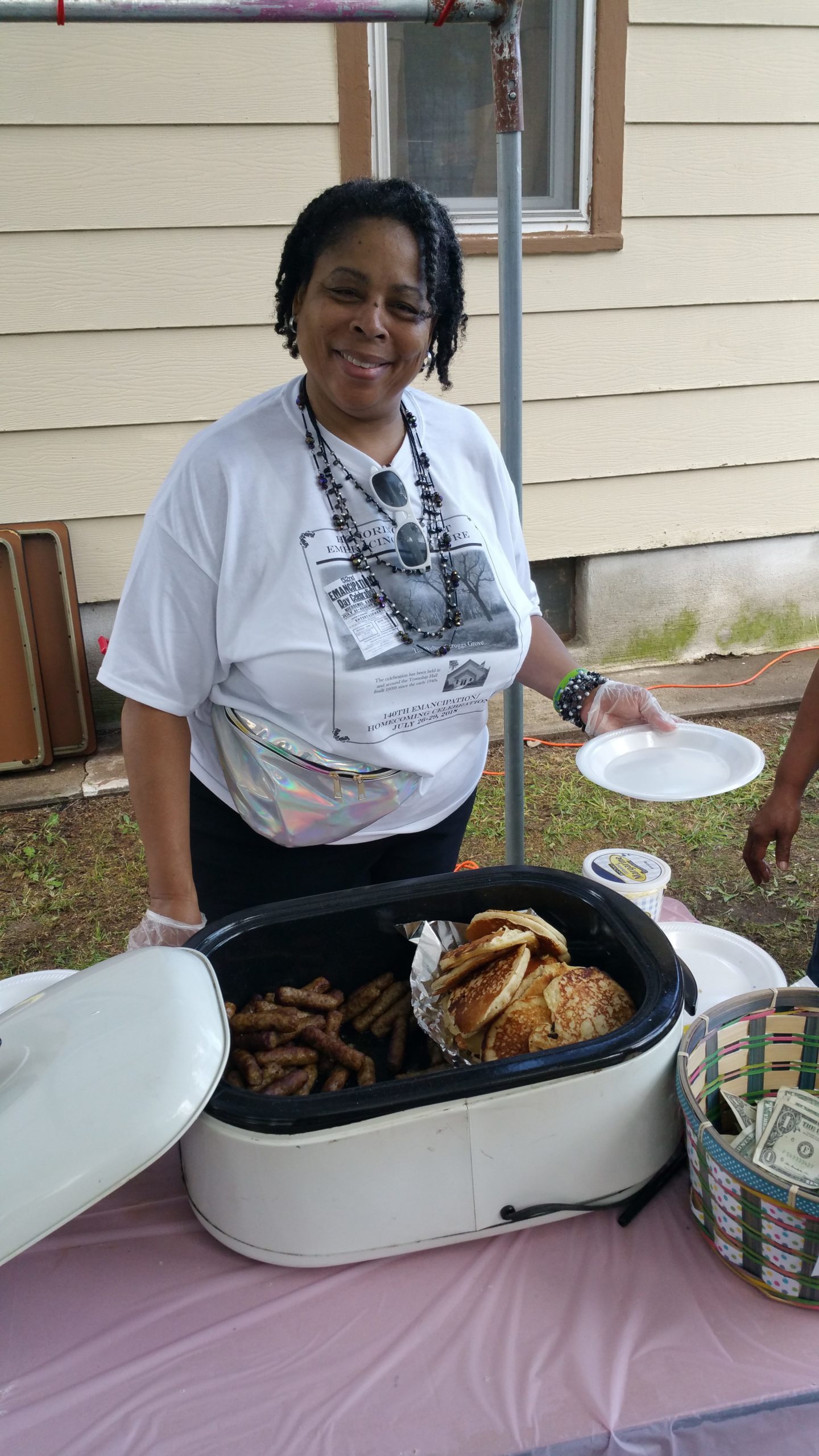 After the parade, it was like being at a combination of a family reunion and a community fair. There were family research organizations on hand, free health screenings, vendors, a group working on Black Homesteaders, and a DJ. Of course, I was most interested in the food: bbq sliders, cheeseburgers, chicken wings, hot links, shaved ice, smoked turkey legs, pies and lemonade were some of the delicacies available.