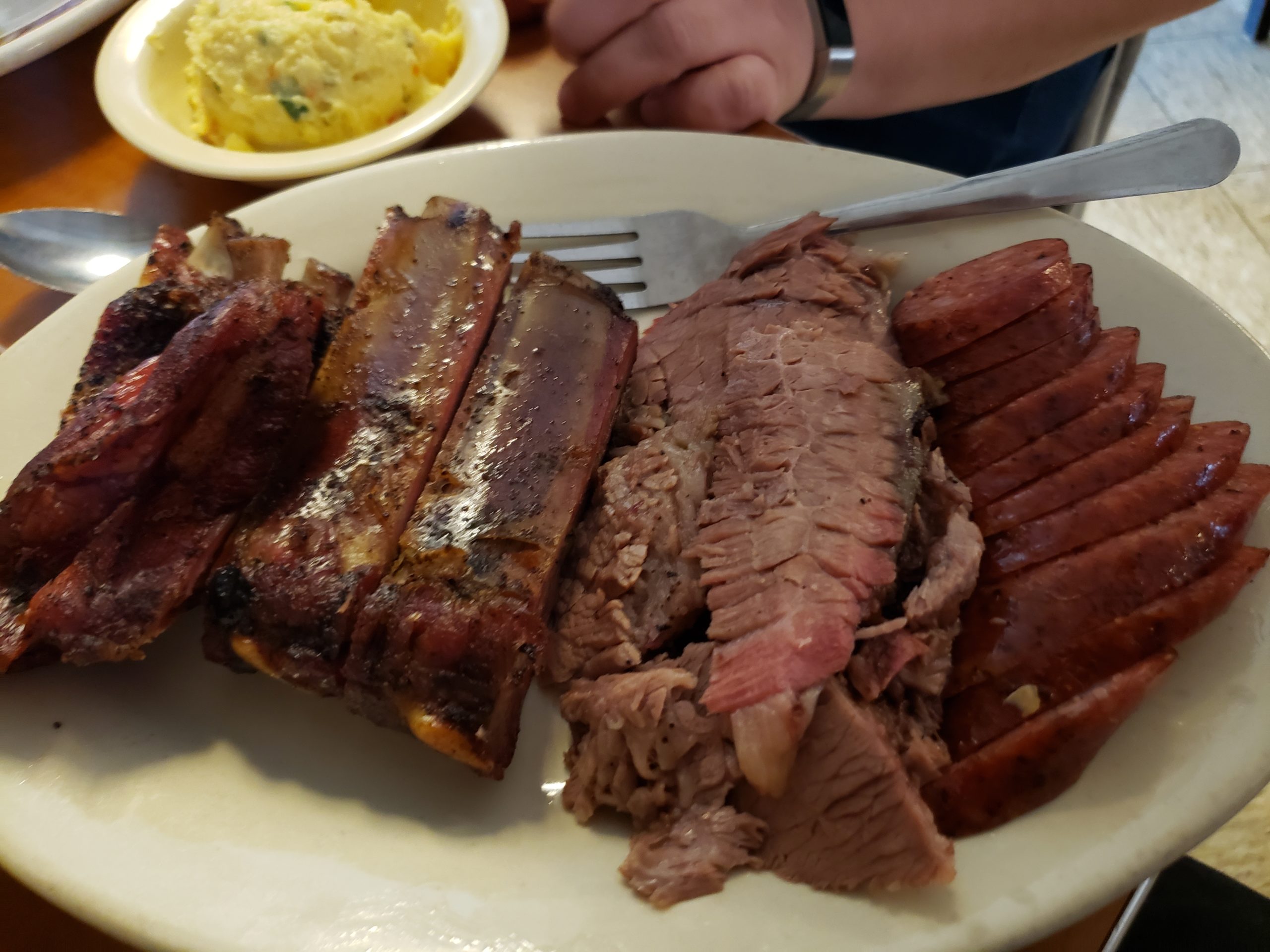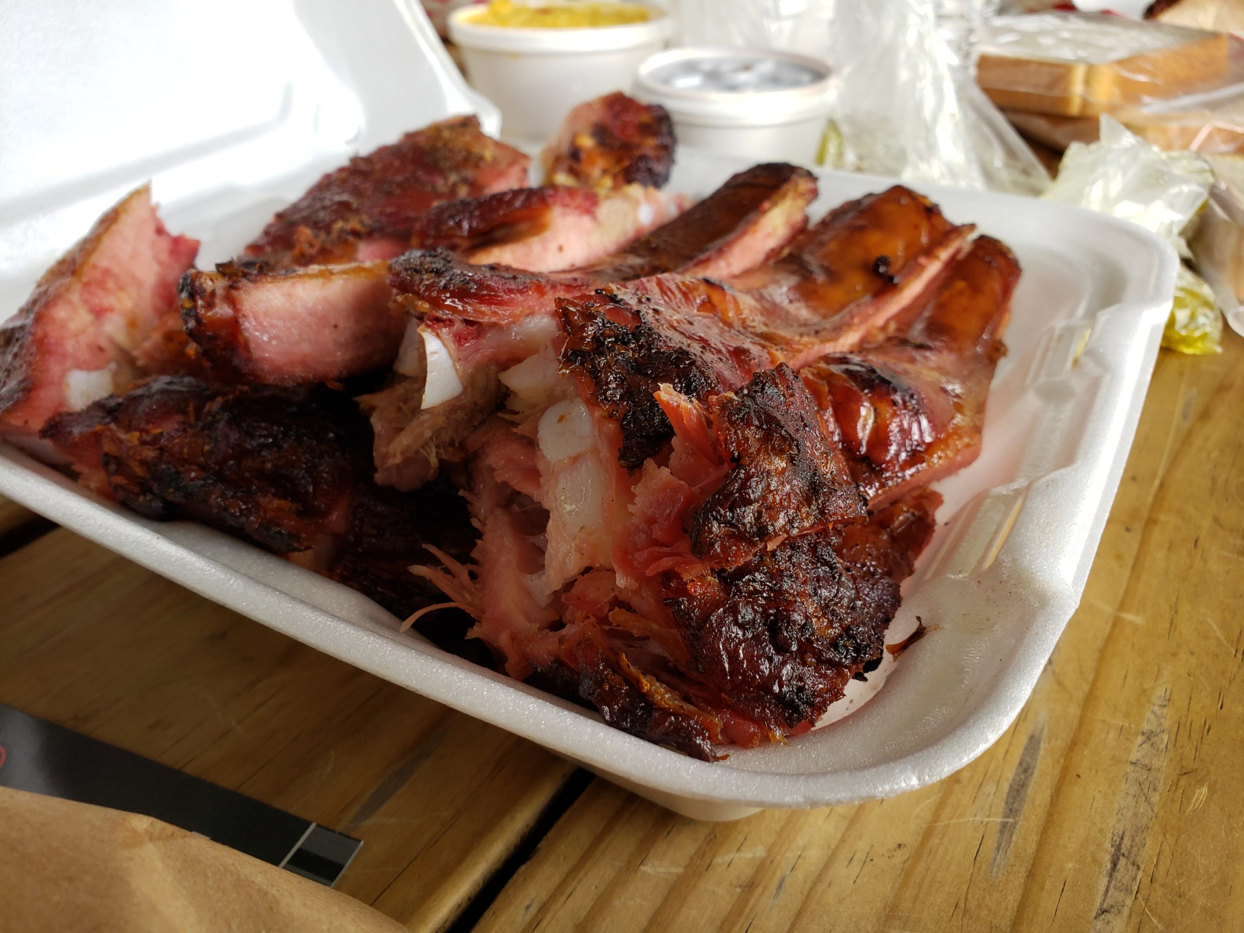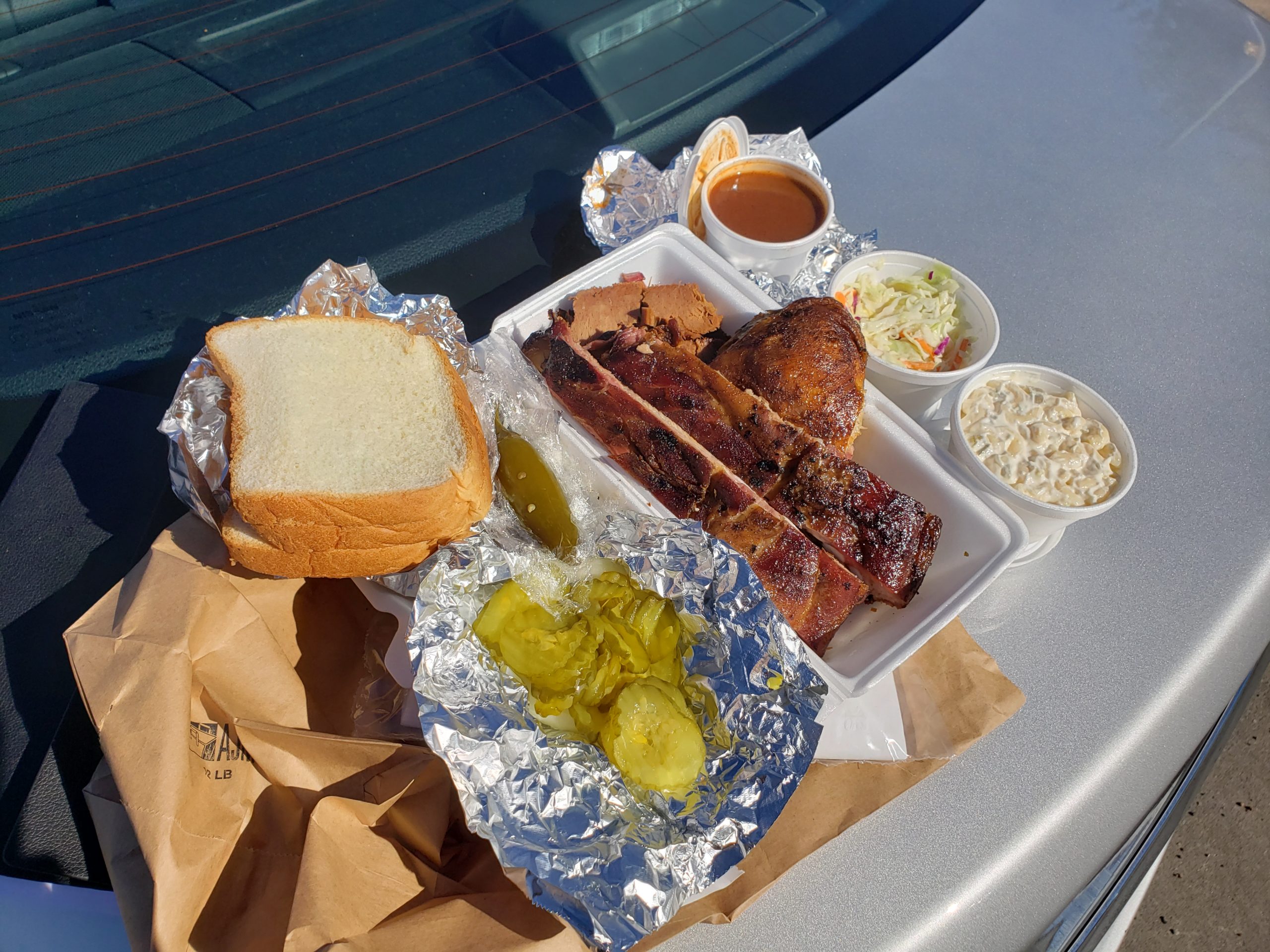 This was my first stop. It’s a takeout place, so I ate the barbecue on the hood of my rental car. I ordered beef brisket, chicken, spareribs, macaroni salad and coleslaw. Pretty standard stuff here. Of all that I ordered, I liked the spareribs the most.