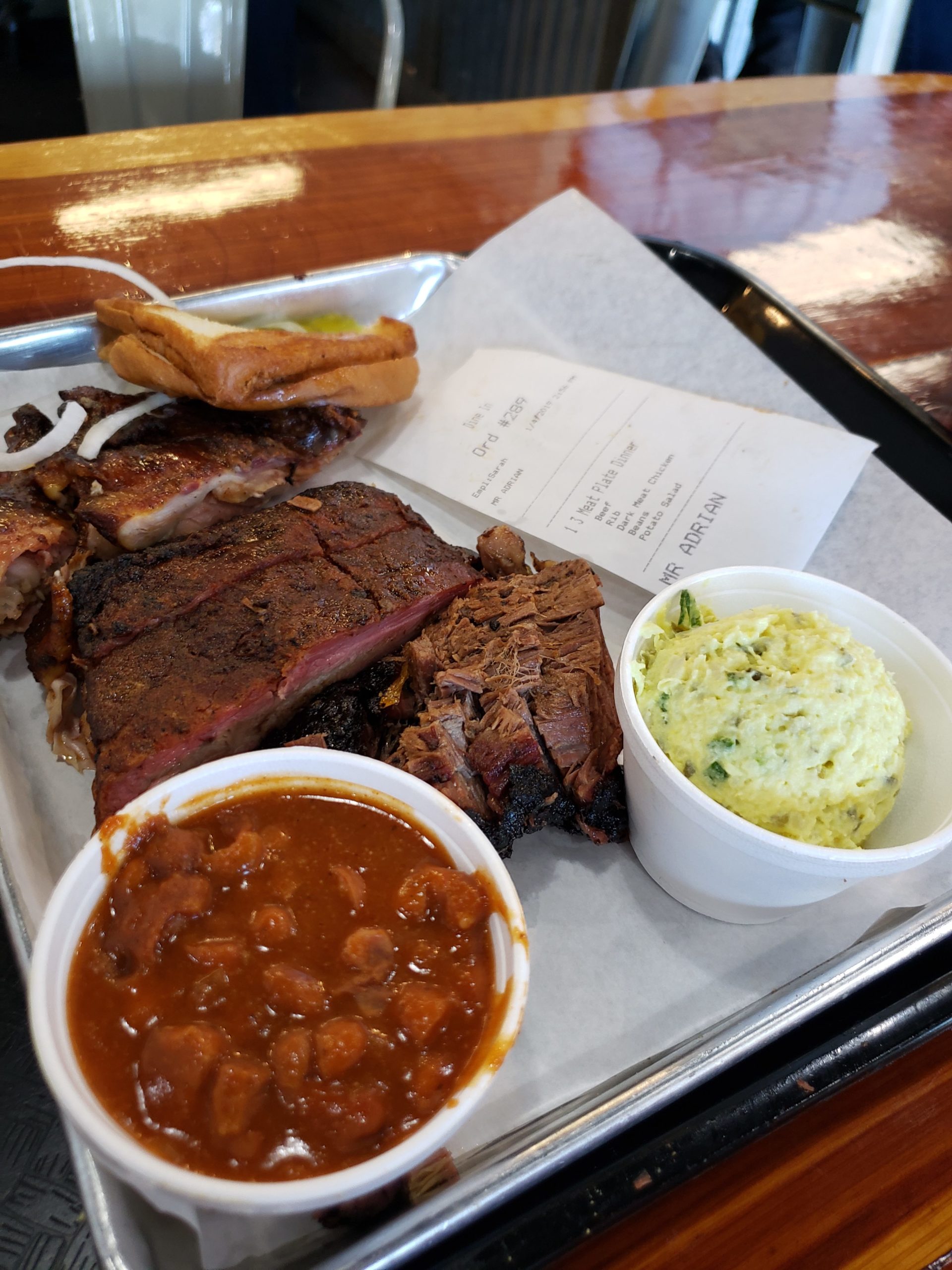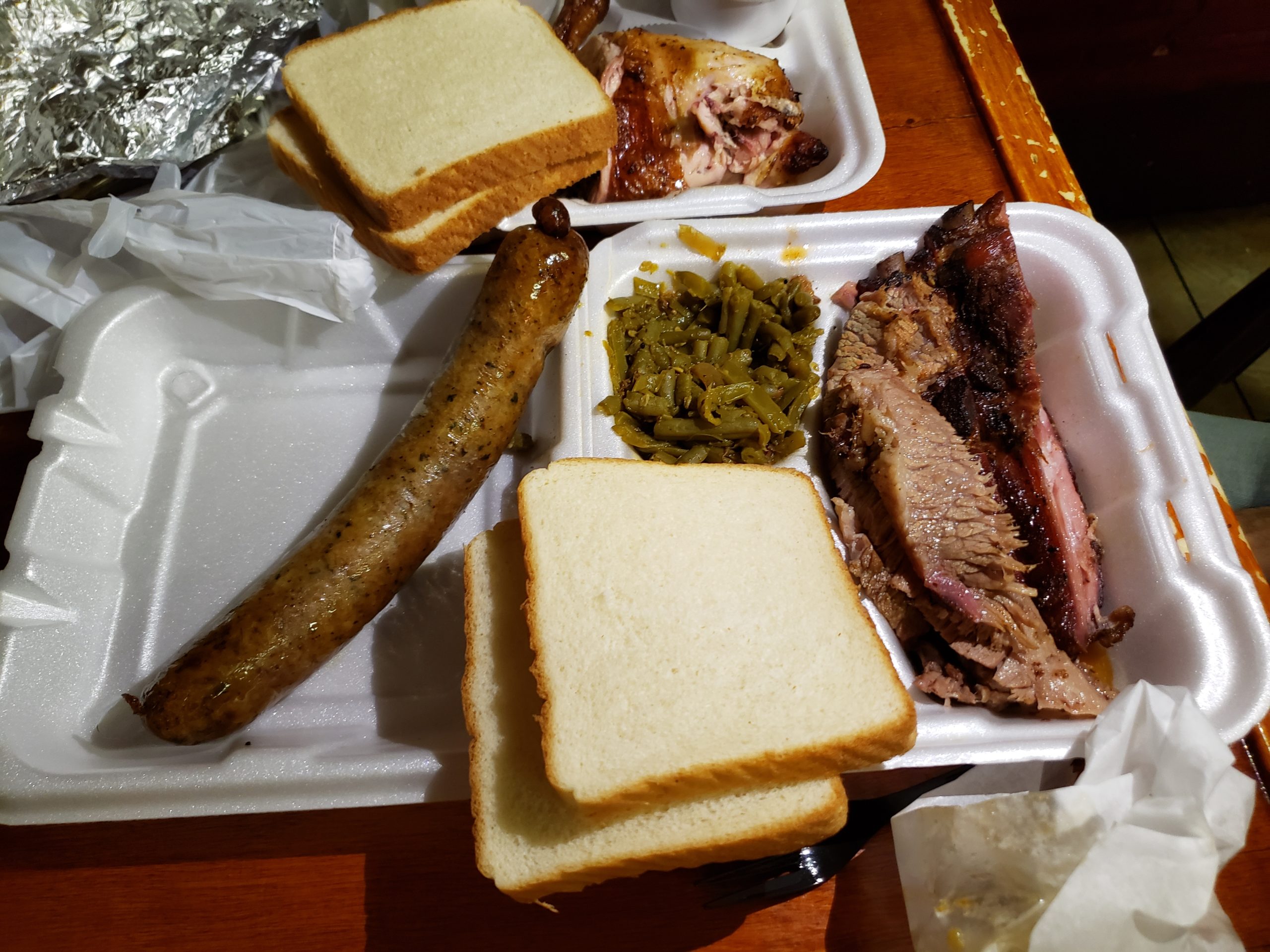 When the late Anthony Bourdain made one of his filming trips in Houston, he made a stop at this joint. His research staff served him well. Of a trip full of spectacular barbecue, this took the slight edge as my favorite place. I ordered beef brisket, chicken, hot links, pork spareribs, baked beans, dirty rice, green beans, mac ‘n’ cheese, and potato salad. The spareribs were amazing . . . a slight char on the outside, a little chewy, and well-seasoned. The chicken had nice skin on the outside, and moist on the inside. The brisket was flavorful, and the hot links had the right amount of spice. I highly recommend this place!