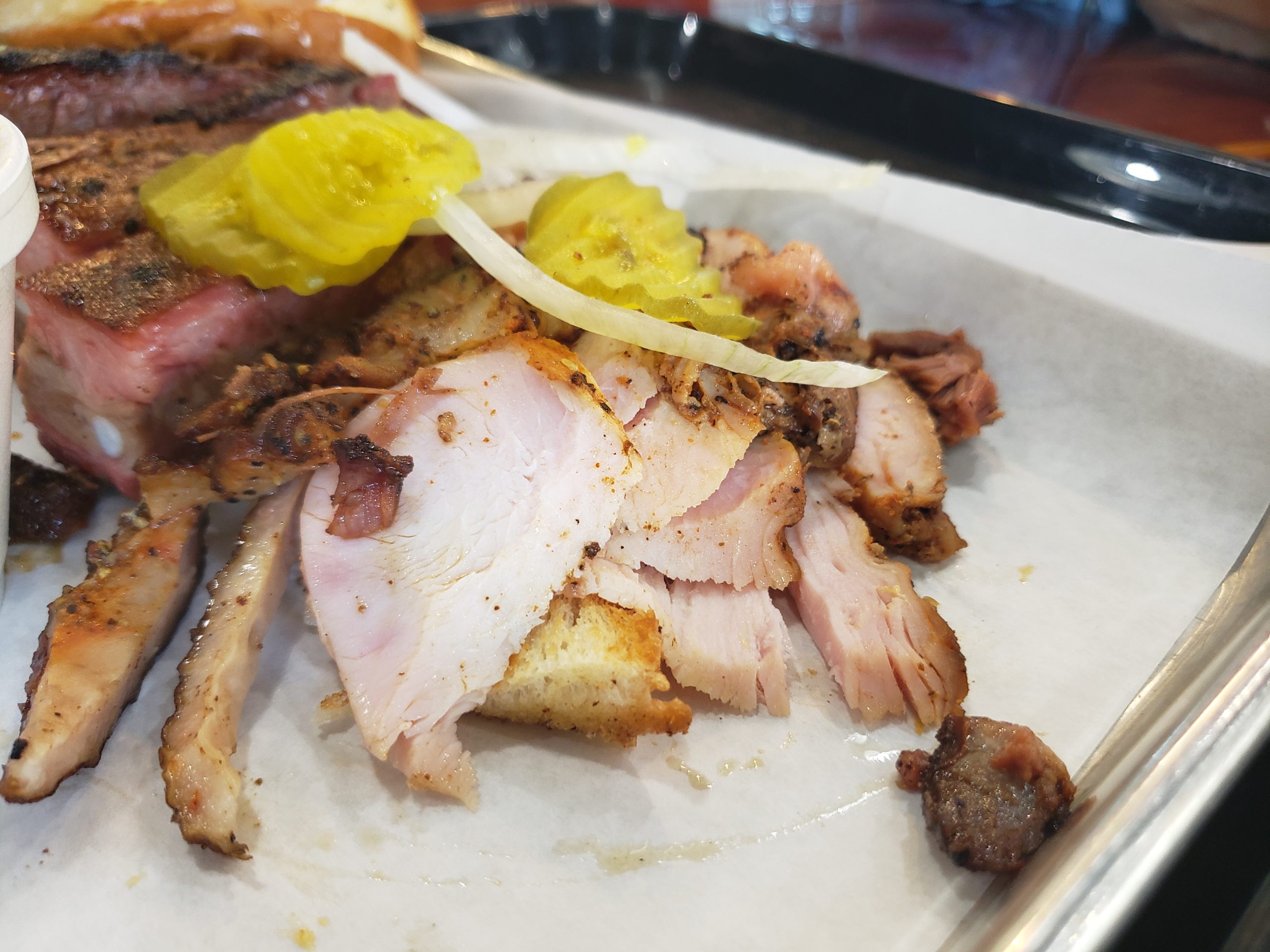 The food is pretty fantastic. I ordered beef brisket, chicken, pork spareribs, turkey breast, hot links, barbecue beans, potato salad, macaroni and cheese, and banana pudding for dessert. Of these, the chicken, spareribs and turkey were the best. I highly recommend this place.