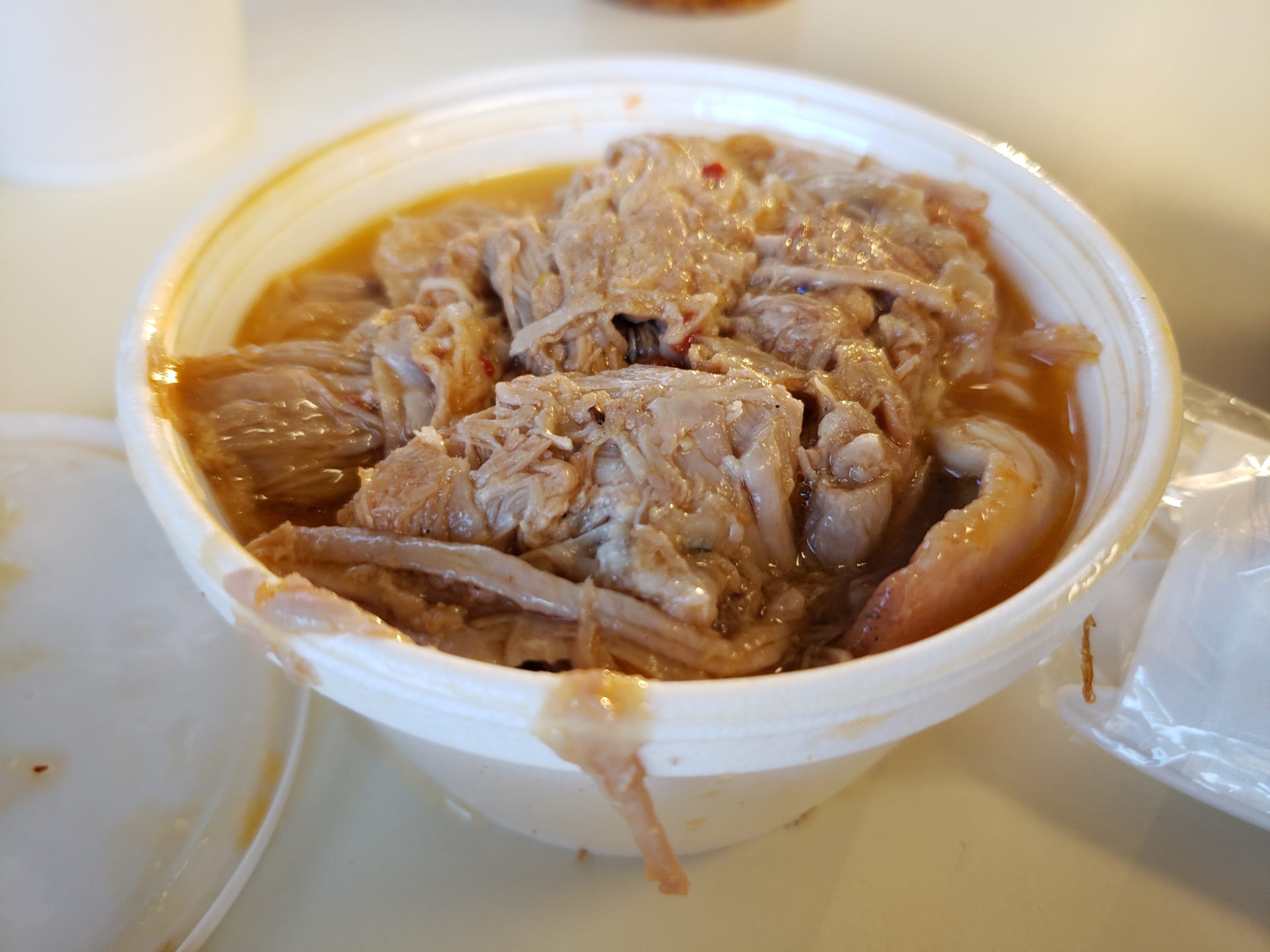 My first stop was Keaton’s Barbecue in Cleveland, NC. This place has been open since the 1950s, and it specializes in something called “dipped chicken.” Dipped chicken is fried chicken that is drowned in a thin, spicy barbecue sauce. I first heard about dipped chicken in this Garden & Gun article written by Jed Portman. Portman describes dipped chicken as: “North Carolina’s answer to Nashville hot chicken.” Here’s a recipe if you’d like to make some at home.