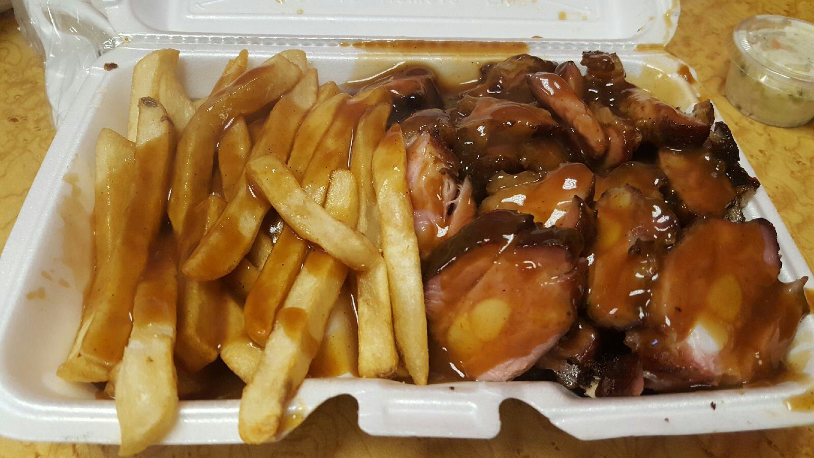 - Fries and white bread come with every order. Some speculate that early barbecue purveyors used both to soak up the grease and sauce.