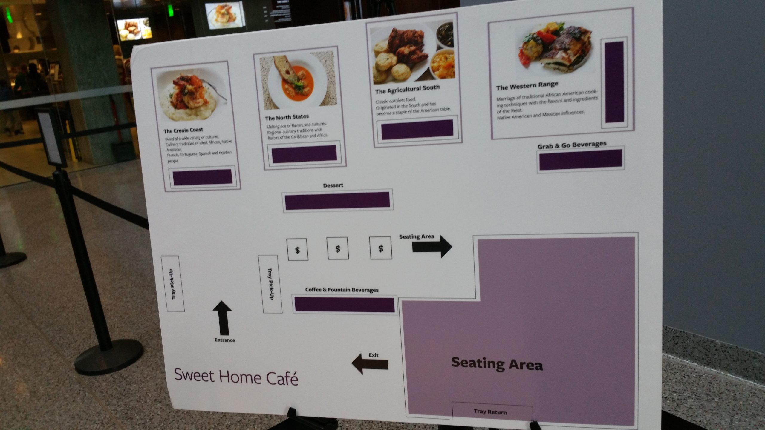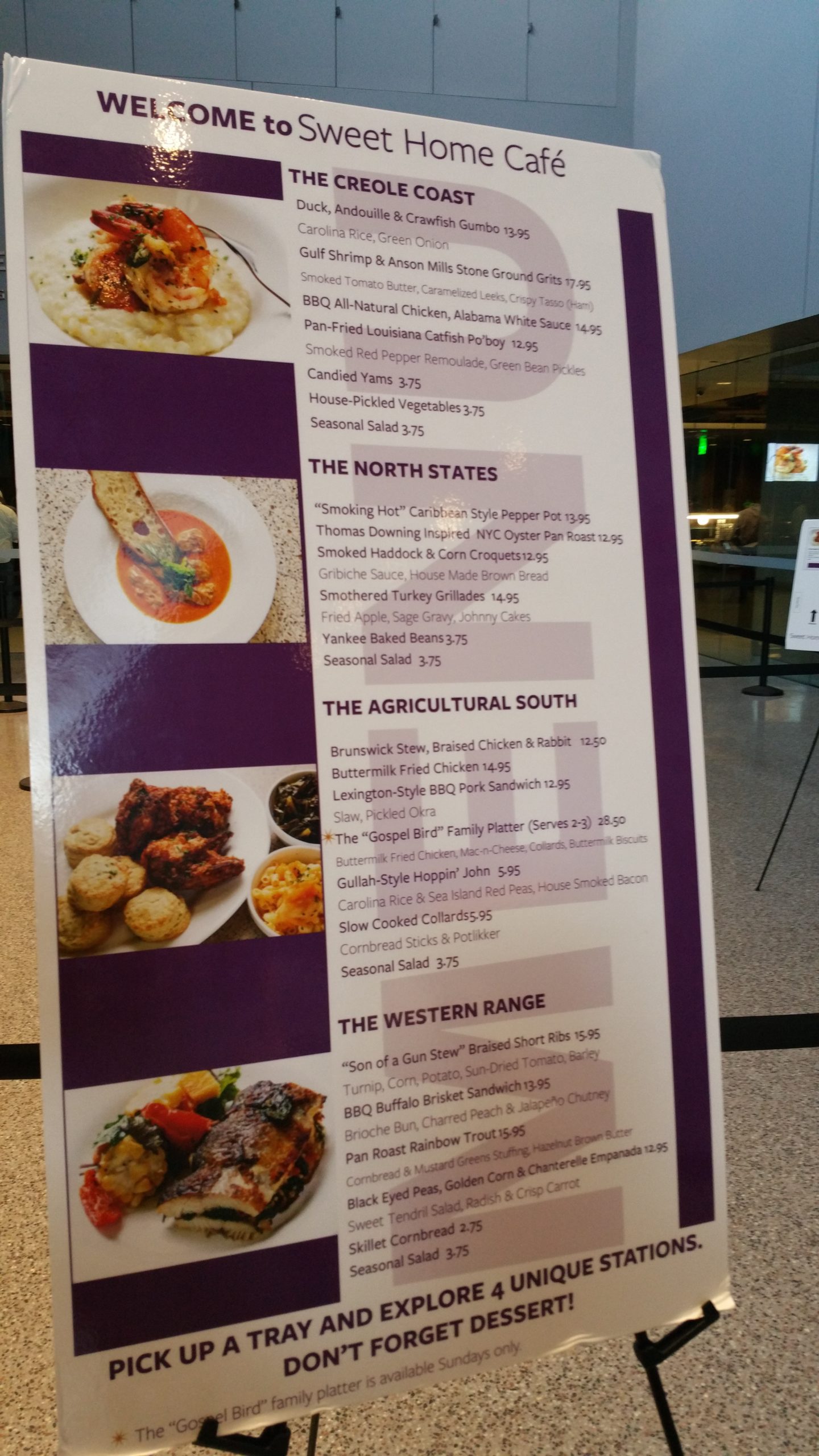 Sweet Home Cafe, helmed by Executive Chef Jerome Grant (previously of The Mitsitam Cafe), is a joy. With consultation from noted culinary historian Jessica B. Harris, the restaurant explores four regional and traditional African American cuisines: the Agricultural South, the Creole Coast, the North States, and the Western Range. Each region has a separate menu and serving station.