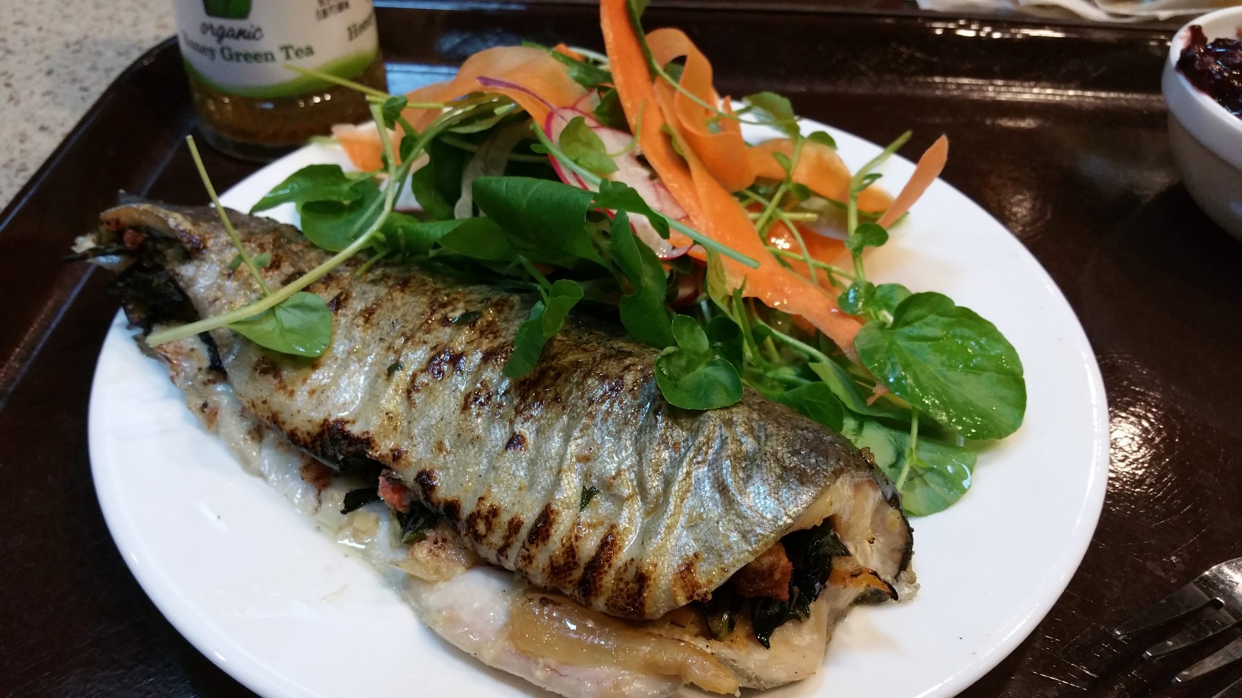 On my visit, the lines were longest at the Agricultural South and Creole Coast stations. This is no surprise because southern/soul food and Creole/cajun food are well-recognized cuisines. I was drawn to the Western Range station because it specifically showcased food that was representative of my native Colorado. I ended up ordering the Pan Roast Rainbow Trout served with cornbread and mustard green stuffing and hazelnut brown butter. For dessert I got a berry and (Colorado) peach crisp. Both dishes were AMAZING!