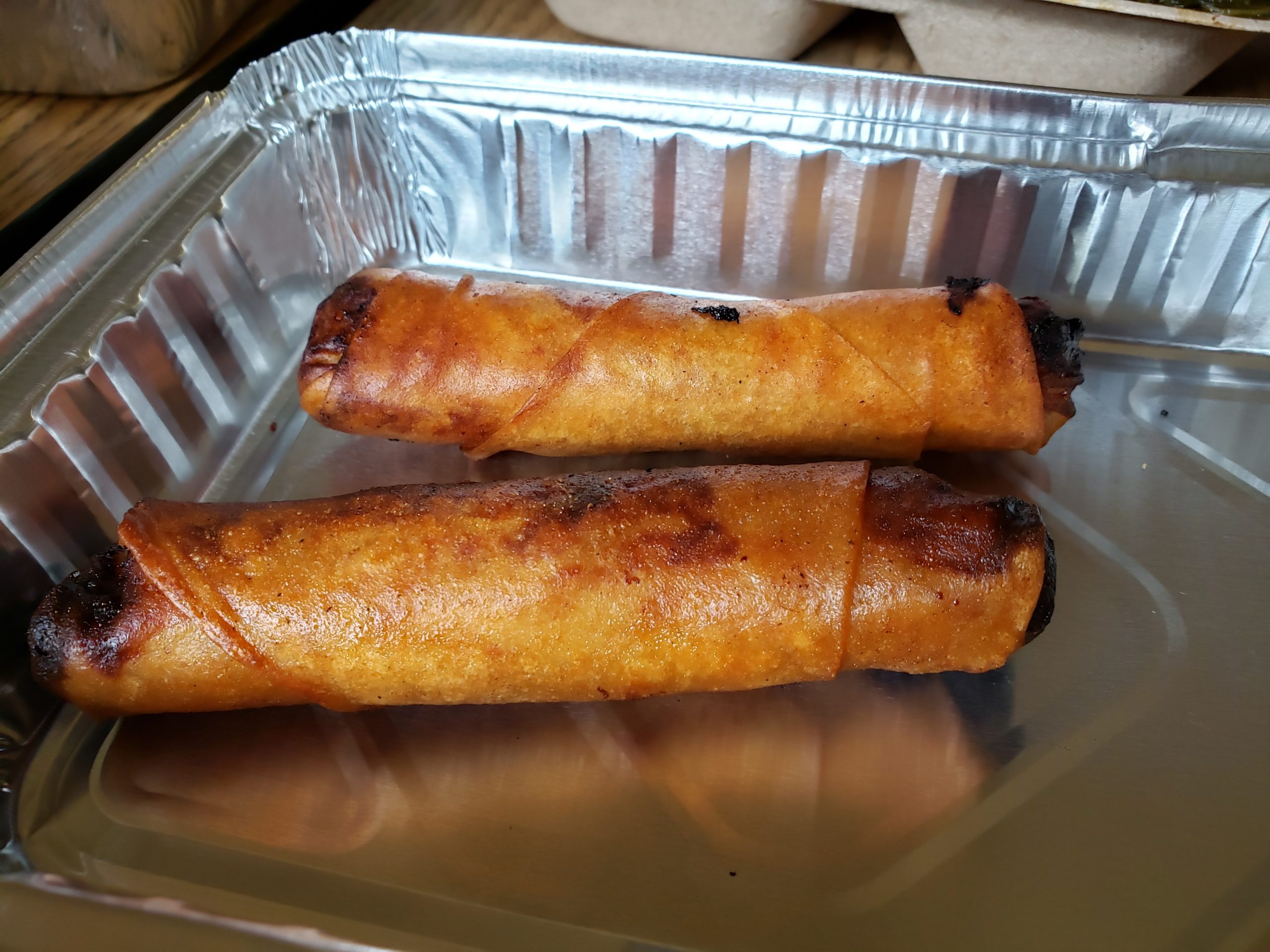 Lumpia–a Filipino-style spring roll filled with cabbage and chicken–tasty.