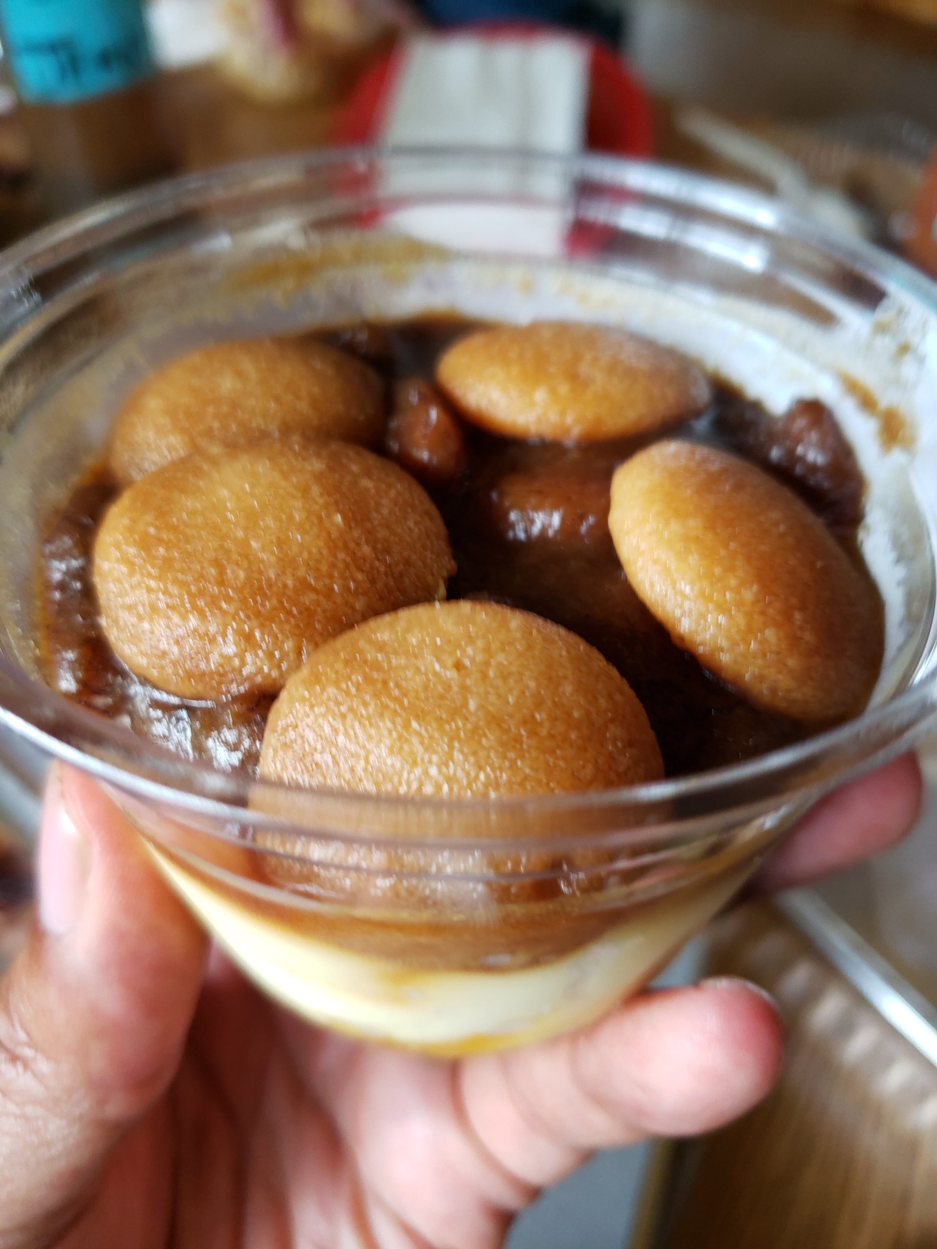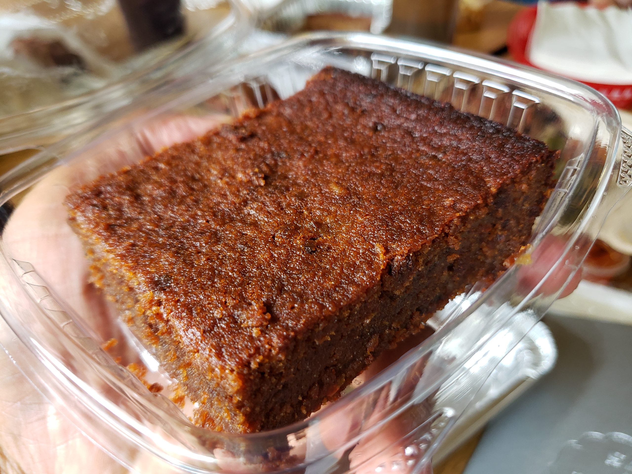 Jamaican rum cake–just opening the container, I wondered if I would fail a breathalyzer test. Very moist and flavorful cake, but you have to be a fan of rum cake (which I am).