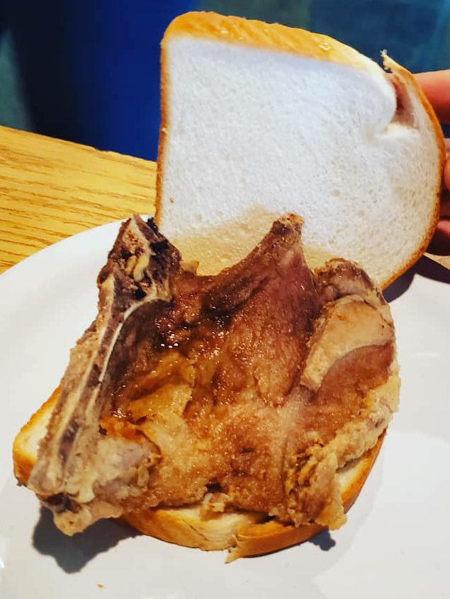 Pork chop sandwich–excellent! A thin pork chop, perfectly fried and seasoned.